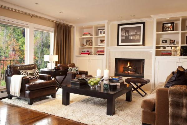 Theo lời của một kiến trúc sư nói rằng :"Chúng tôi được giao nhiệm vụ thiết kế một phòng gia đình mà ngay cả những con vật cưng của gia đình cũng có thể cảm thấy thoải mái thưởng thức sự ấm áp trong mau nha này . Sử dụng các loại vải phù hợp như da được sự cân bằng màn vải lanh tự nhiên, chúng tôi nhấn mạnh thêm sự thoải mái và có cảm giác ấm áp cho phần thiết kế nội thất của căn phòng này mà không không làm mất đi vẻ thẩm mỹ và tính tiện dụng của nó."