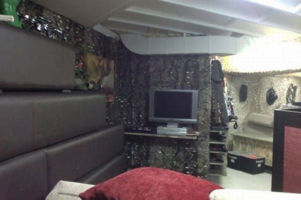 Đây là những gì mà chủ nhà cho chúng tôi thấy bên dưới căn hầm của nhà mình, ông nói là dành riêng cho con trai mình để nhắm vào mục đích tránh cho bé ra ngoài đường chơi quá nhiều vì sợ nguy hiểm. Nhưng với mật độ xe cộ quá nhiều trong thị trấn thì đó cũng là điều hiển nhiên.Với thiết kế phải nói là mang đậm tính chất nhà binh thì đến người lớn như chúng ta còn phải phát ghiền chứ huống chi là con nít. Súng nhựa được đặt có nơi và nơi đó như là một kho vũ khí với rất nhiều loại súng nhựa. Với thiết kế nội thất là những cái kệ sách, bàn học là những thứ cần thiết cho việc học của con trai ông và nó cũng theo cùng một màu "rằng ri" nhìn rất hầm hố.