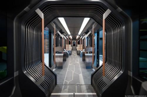 Tàu điện thế hệ mới của Nga sở hữu thiết kế của một phương tiện tương lai với màn hình cảm ứng, ghế ngồi sang trọng và hệ thống đèn chiếu sáng hiện đại.